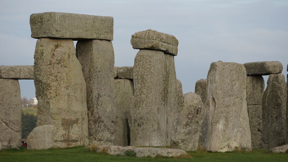 Le ciel est mitigé mais il finira par s’éclaircir au bout des 2ookm qui séparent Maidstone de Stonehenge. Le site est beaucoup plus étendu que nous le pensions: il faut stationner sur un parking et prendre une navette (bus) pour rejoindre le cercle de pierre. On passe à côté de plusieurs petits monticules qui font partie du site il s’agit vraisemblablement d’autres cromlechs, en bois ceux là…