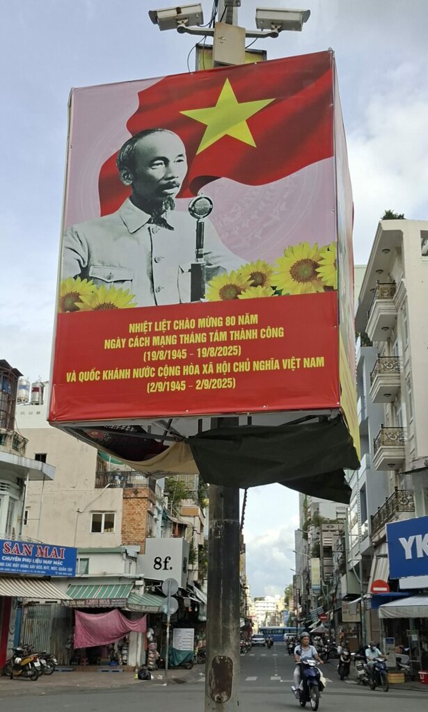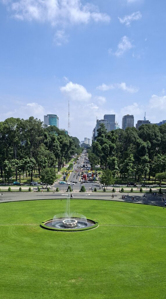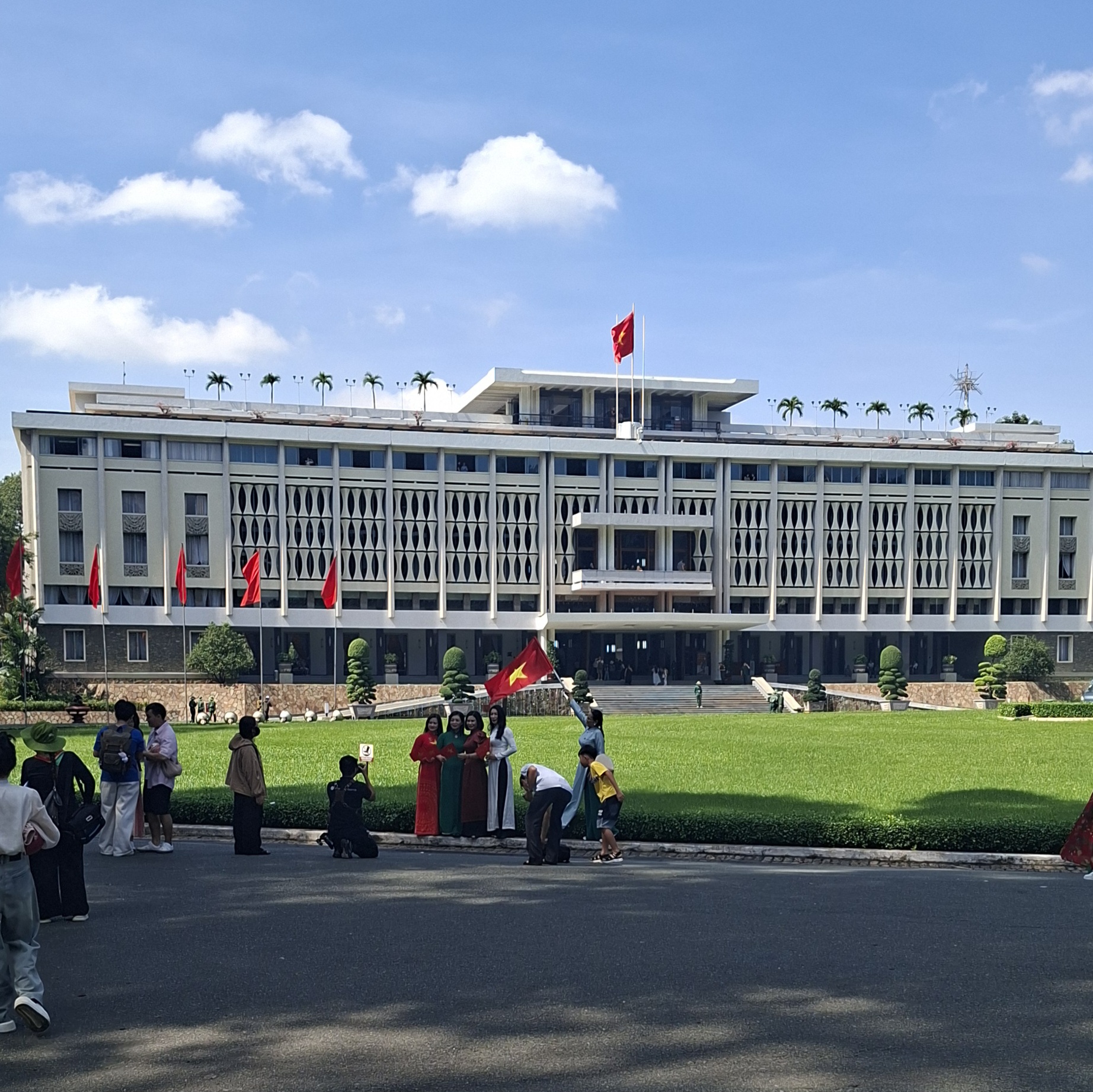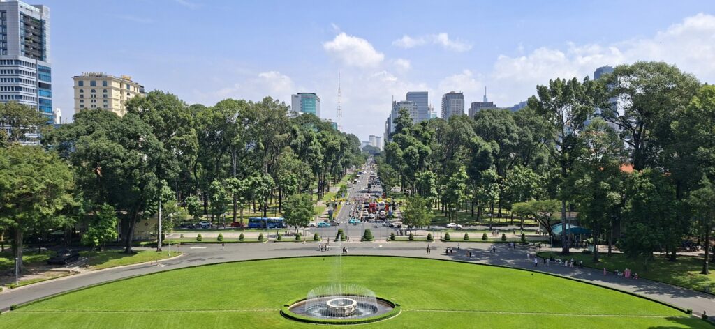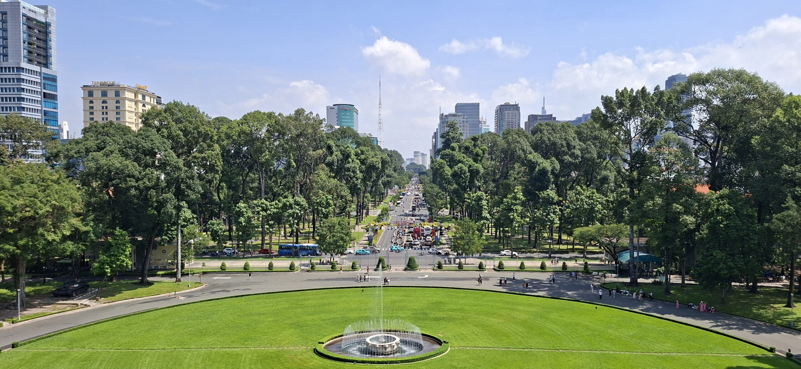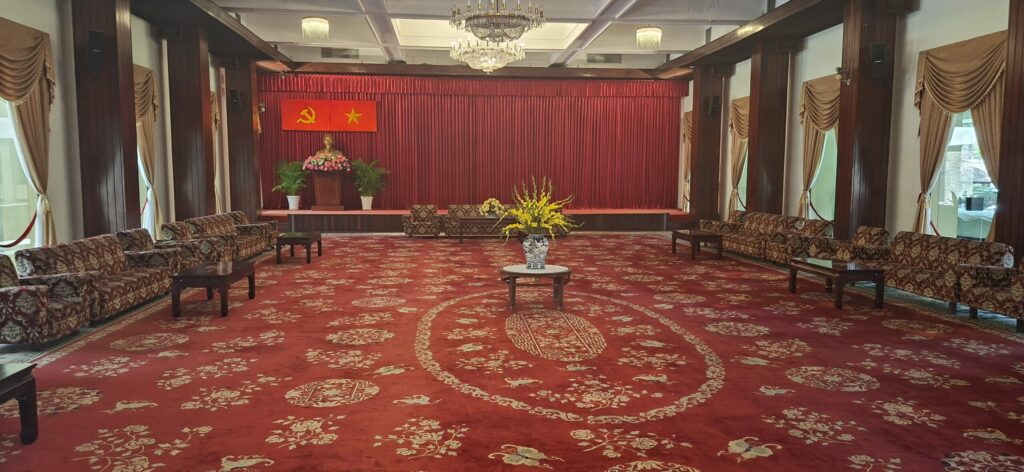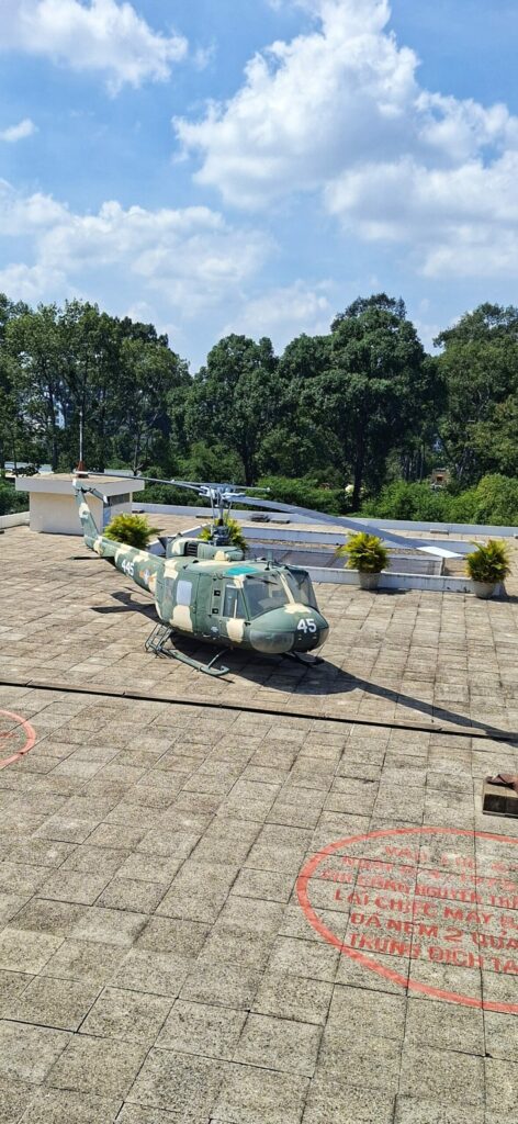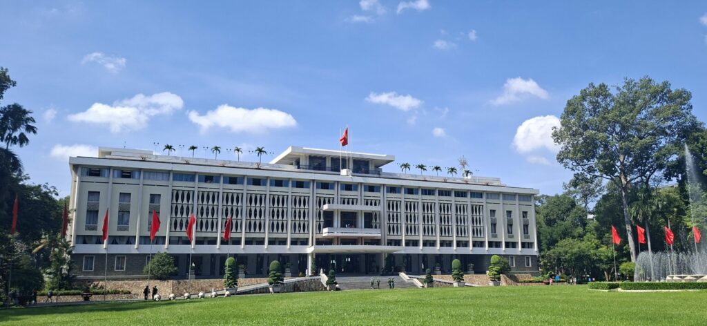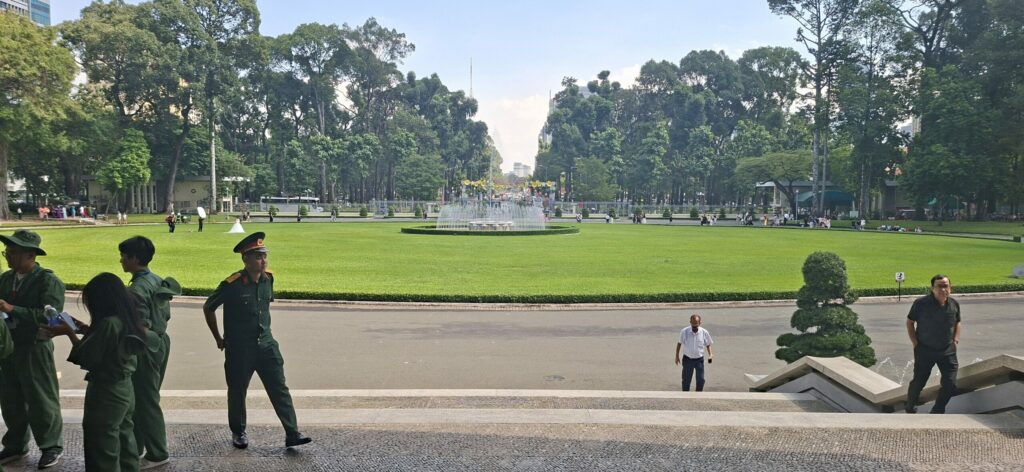 Elle nous emmène au Palais de l’Indépendance, symbole de la Réunification de la République Démocratique du Vietnam (Nord) avec la République du Vietnam (Sud). Cet endroit a été le théâtre de nombreux événements marquants. Nous l’avions déjà visité mais un rafraîchissement de notre mémoire nous semblait utile.