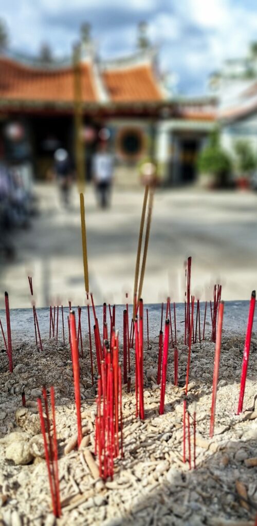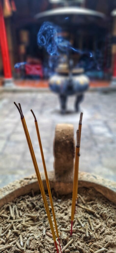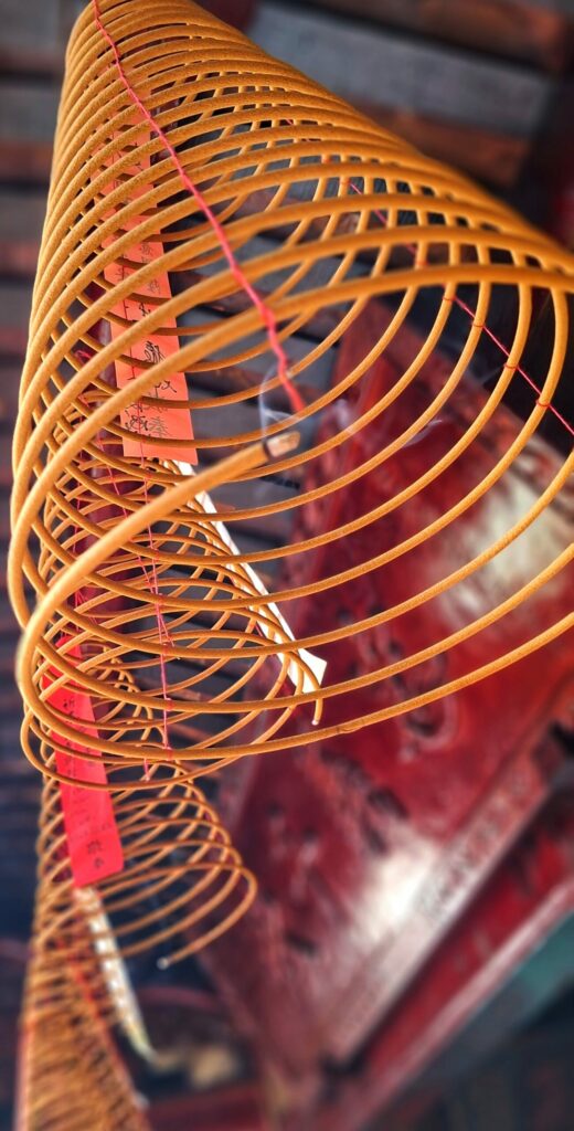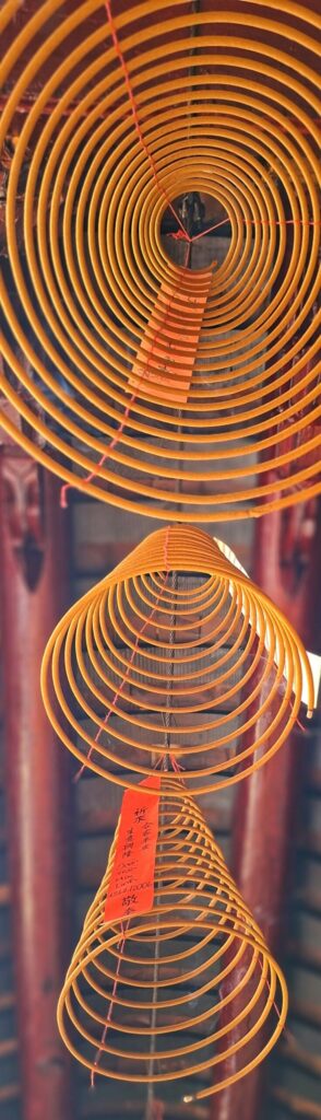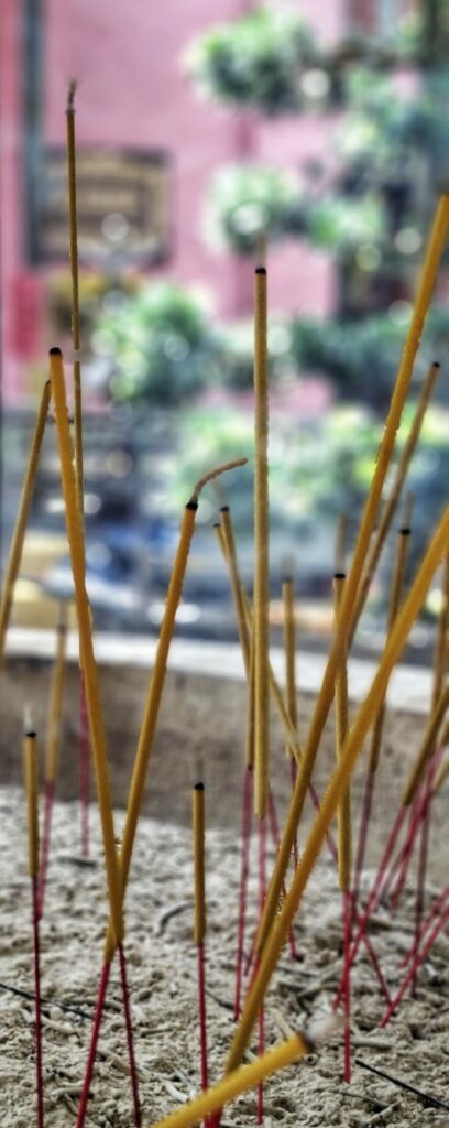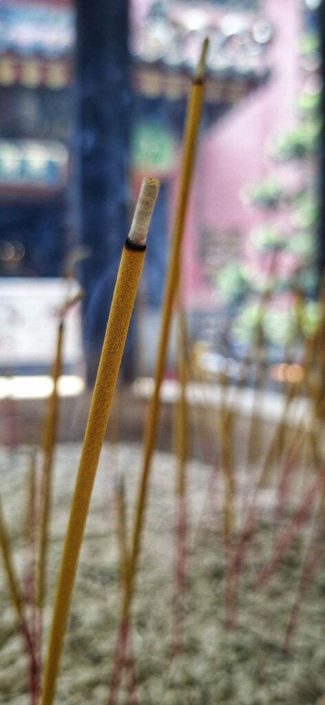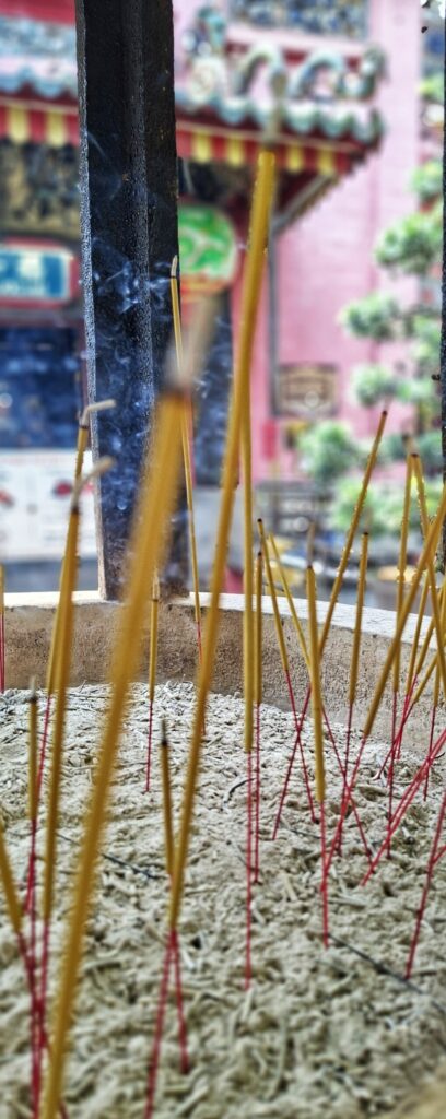 On continue avec la visite de la Pagode de l’empereur de jade. Il y a de l’encens ; je suis content (euphémisme). C’est une pagode où prier pour demander de trouver l’amour ou avoir des enfants. Subséquemment, on n’a pas prié.