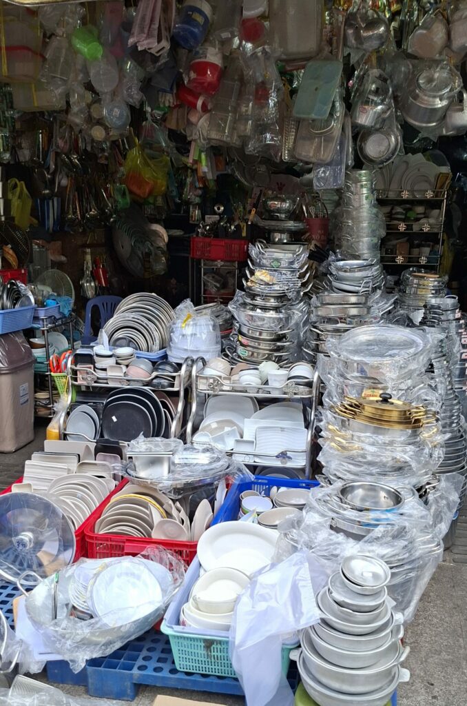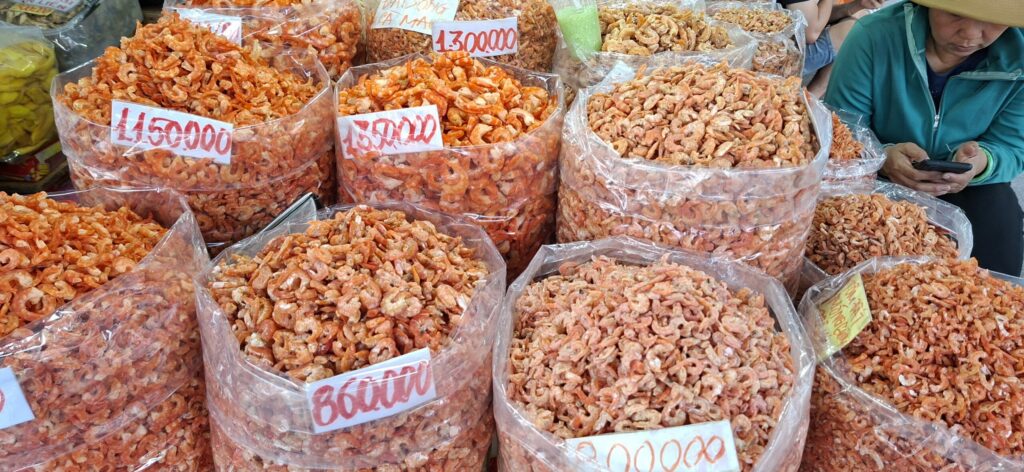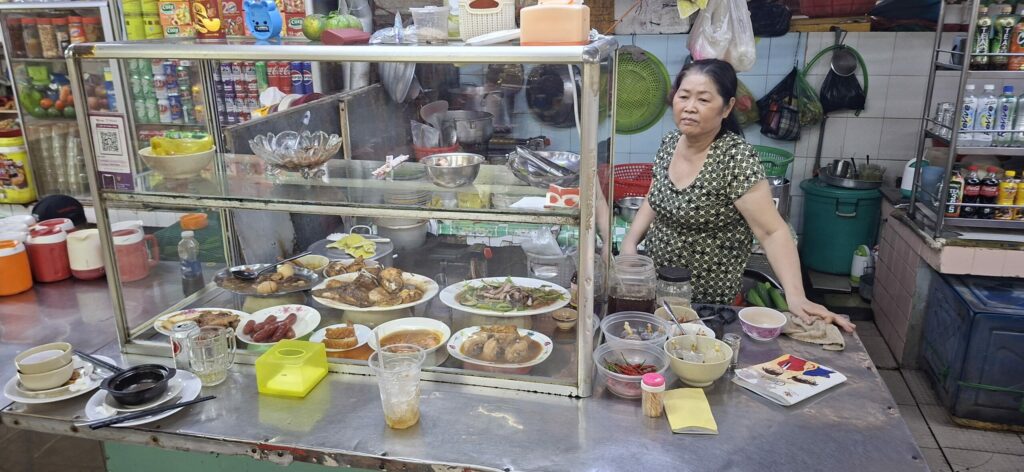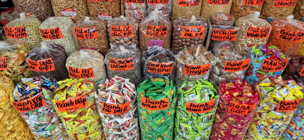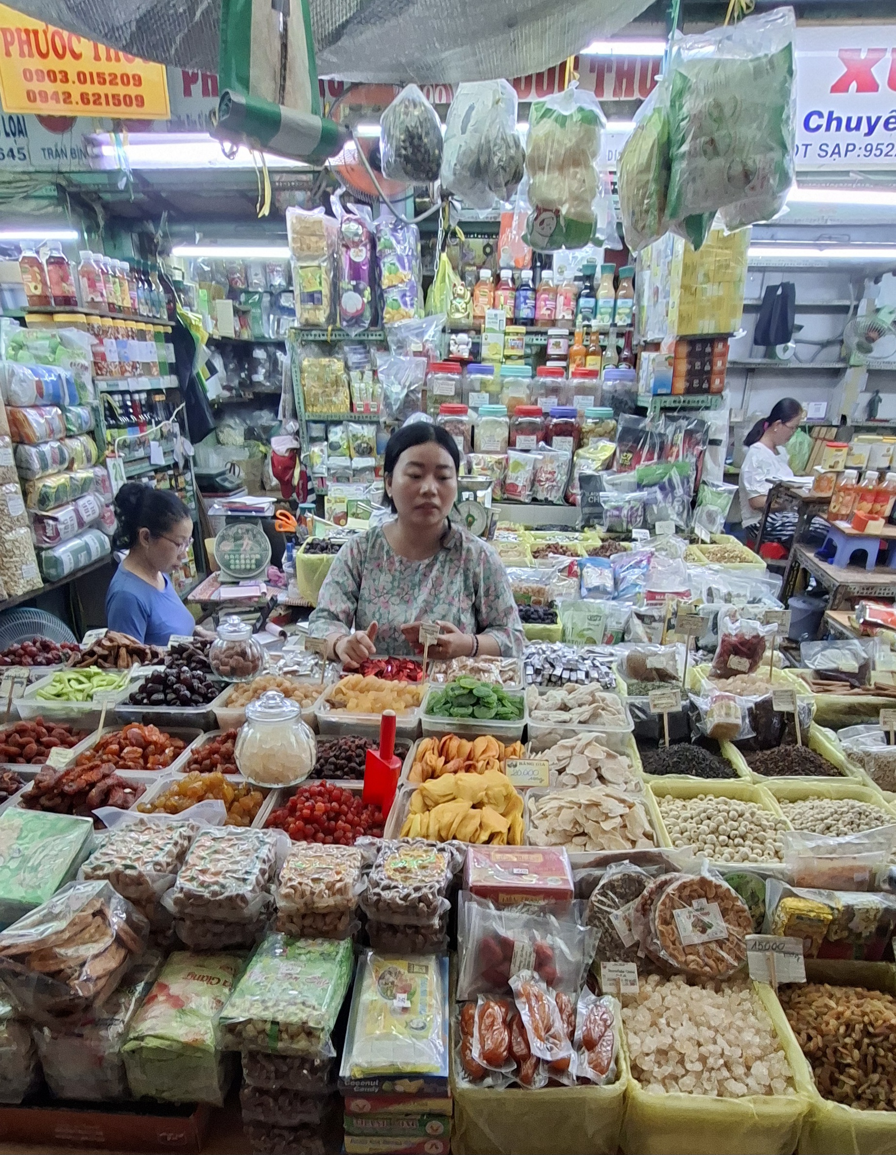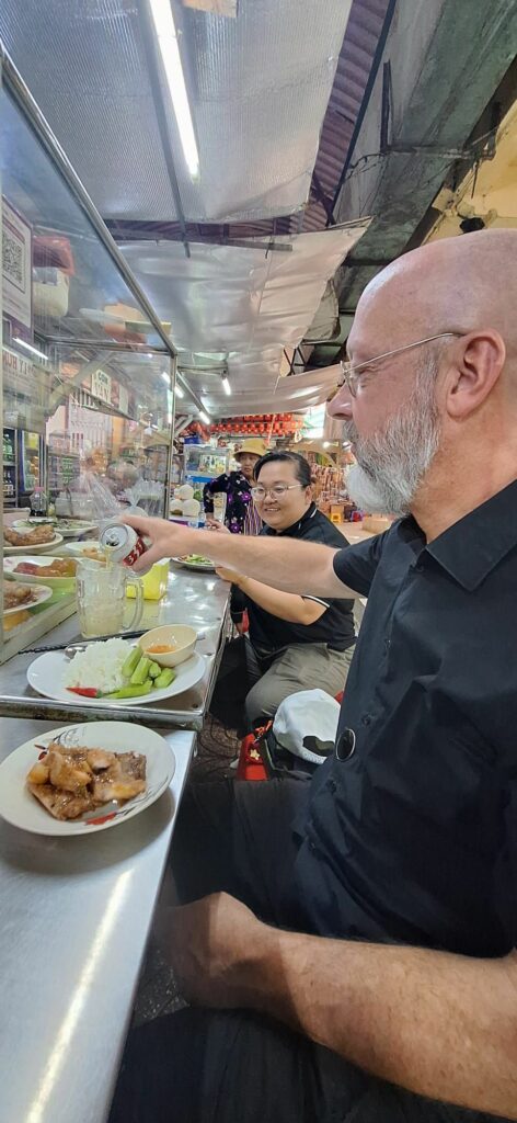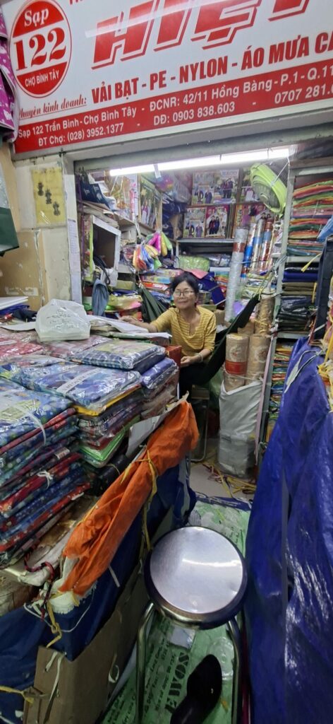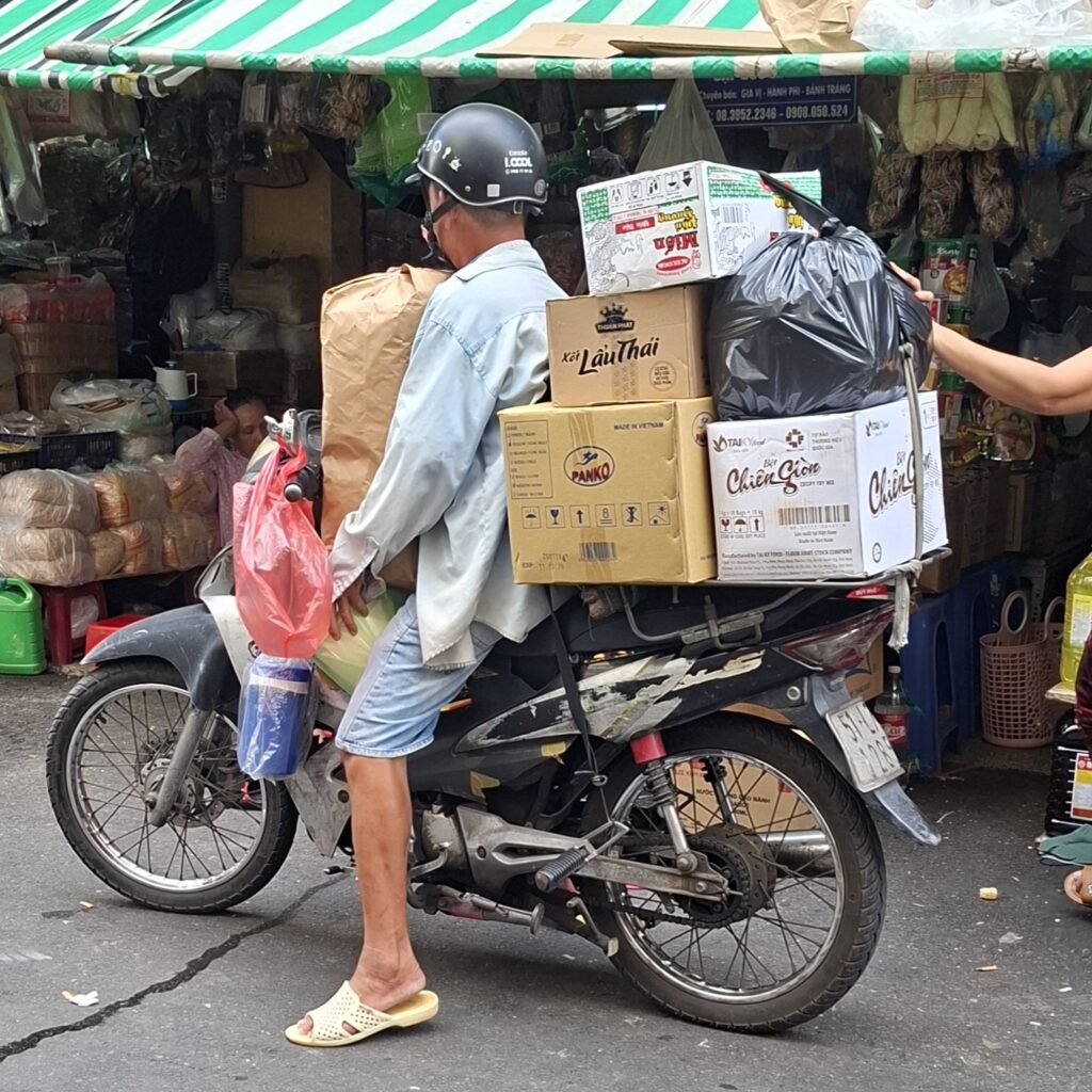 On continue notre périple par la visite (et un repas) au Binh Tay Market, dans le quartier chinois de Cholon. Le repas nous a tout de suite coûté 6€… pour trois 🤯 Benoit a bu sa 333 à la japonaise, c’est-à-dire dans un verre rempli de glaçons (à l’eau minérale, enfin… on espère !) Sinon, on y trouve de tout, mais surtout n’importe quoi. Reno, Marie a acheté des kits (bouillon et épices) pour faire du pho.