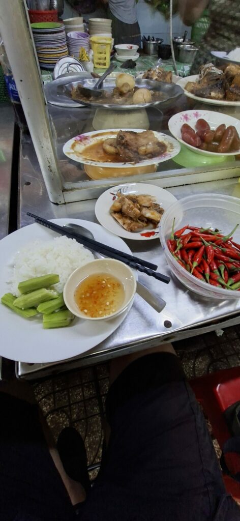 Quel plaisir de manger un phô de grand matin ! Pas besoin de prendre mon kit petit-déjeuner ici, je trouve tout ce que je peux manger : fruits, noix, dim-sum et surtout phô (soupe vietnamienne qui ne nécessite rien d’autre: bouillon, légumes, nouilles de riz, poulet ou boeuf).