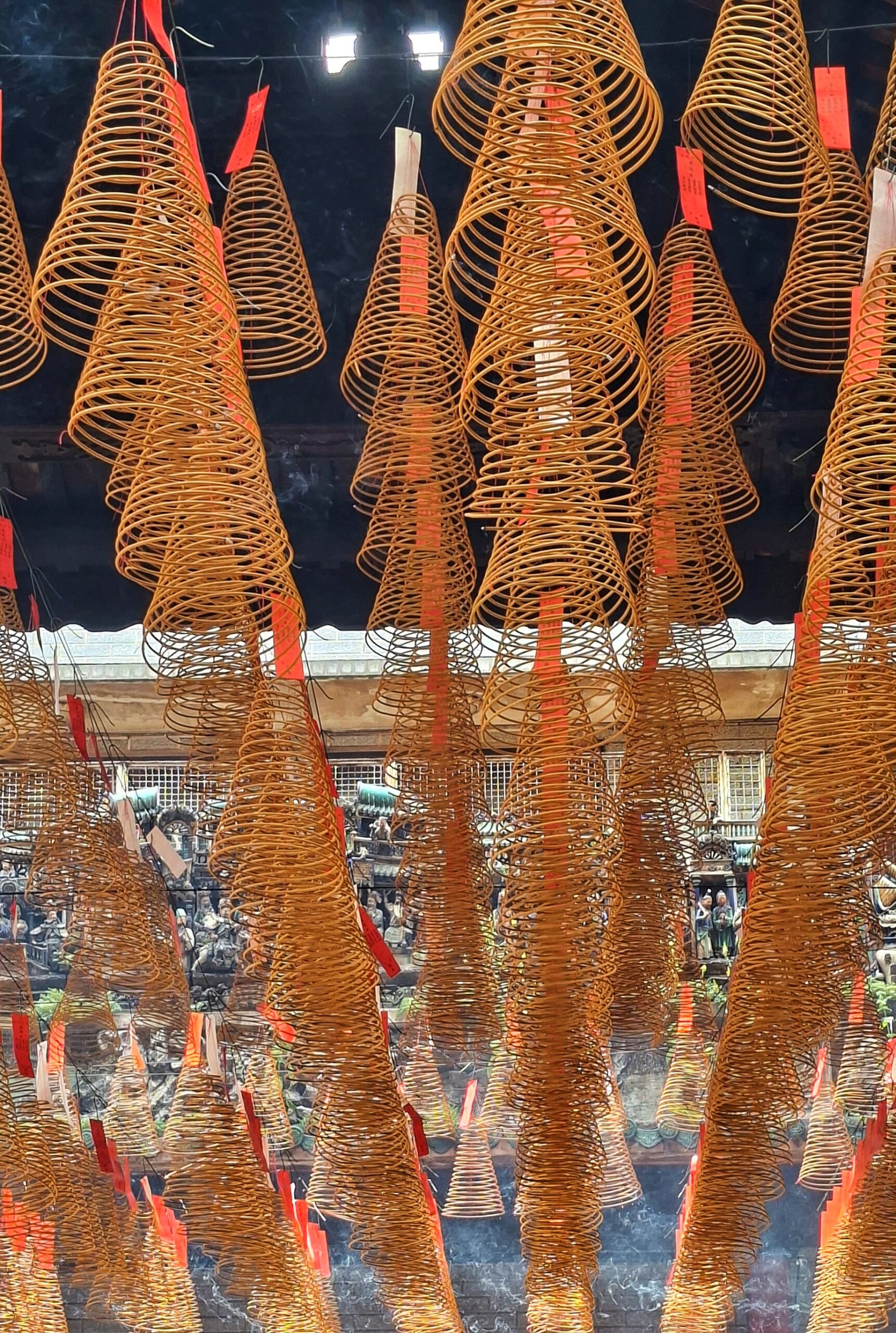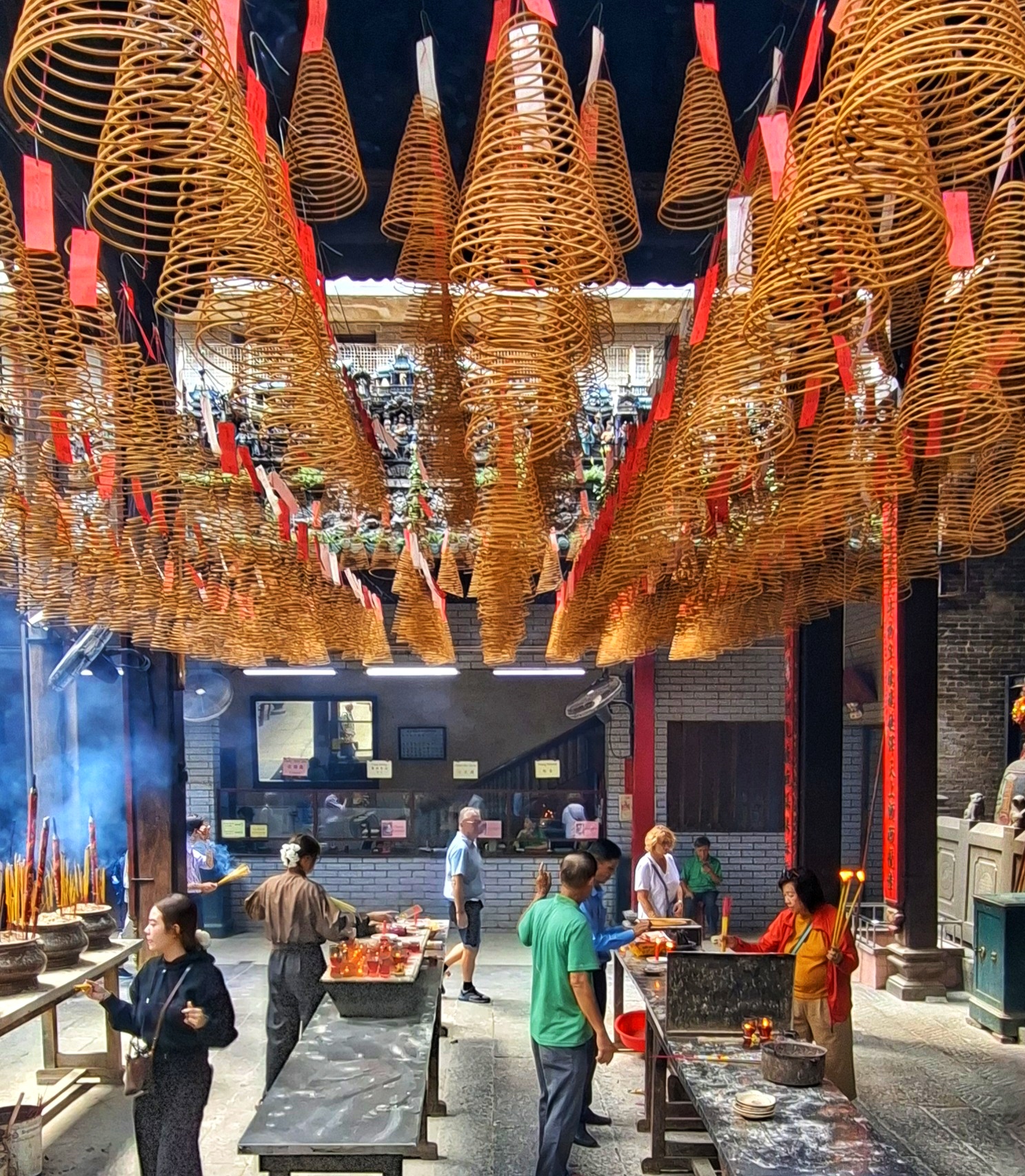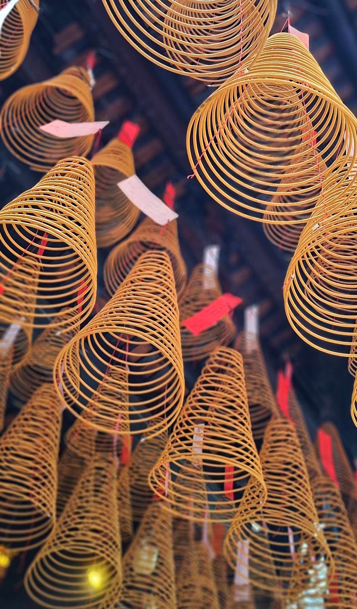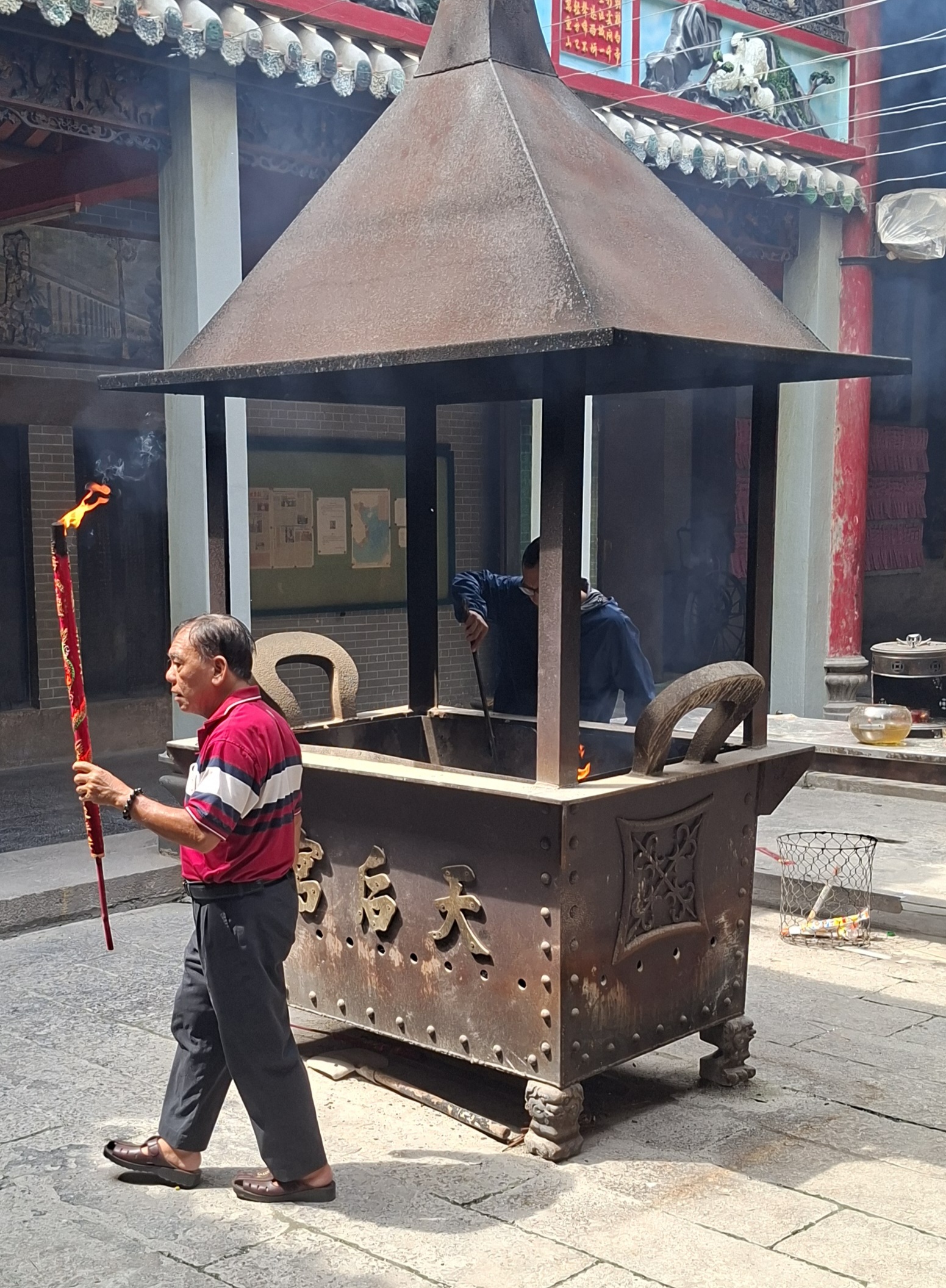On se rend donc dans le quartier de Cholon (où nous étions hier, oui) pour aller admirer un grand temple qui était passé sous le radar de notre guide: Thien Hau Pagoda. Encore des photos d’encens et de bougies 🤣