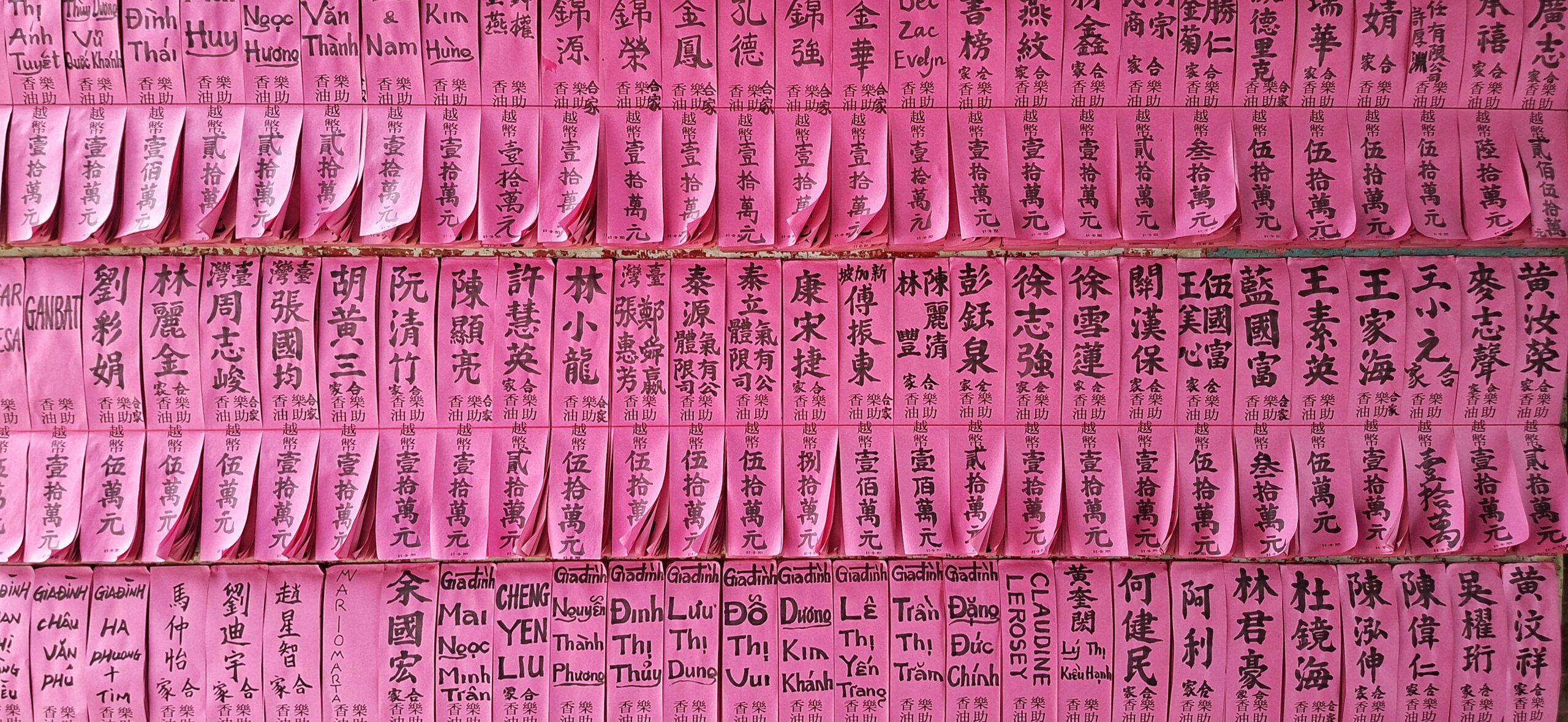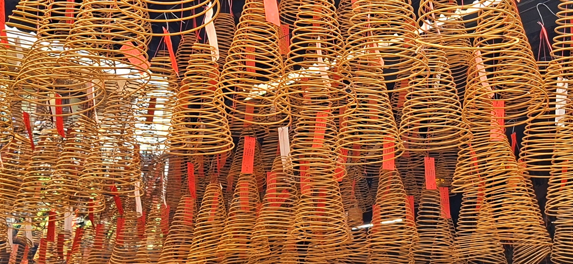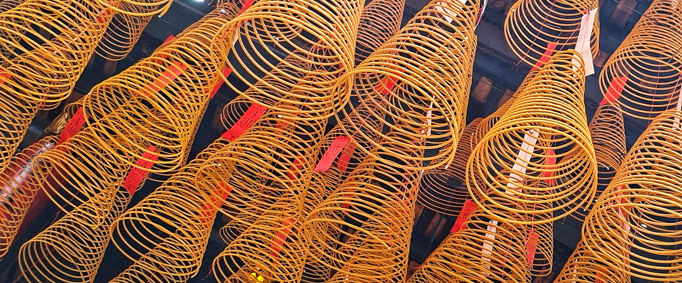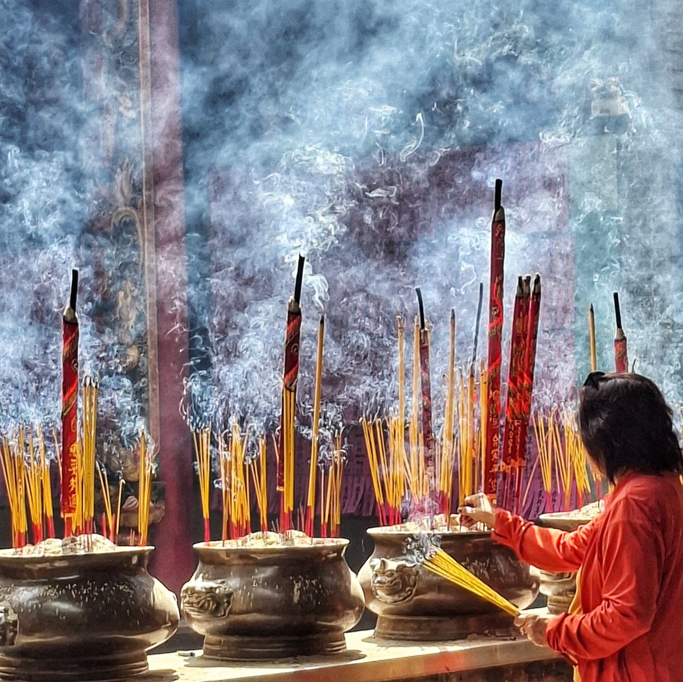 On se rend donc dans le quartier de Cholon (où nous étions hier, oui) pour aller admirer un grand temple qui était passé sous le radar de notre guide: Thien Hau Pagoda. Encore des photos d’encens et de bougies 🤣