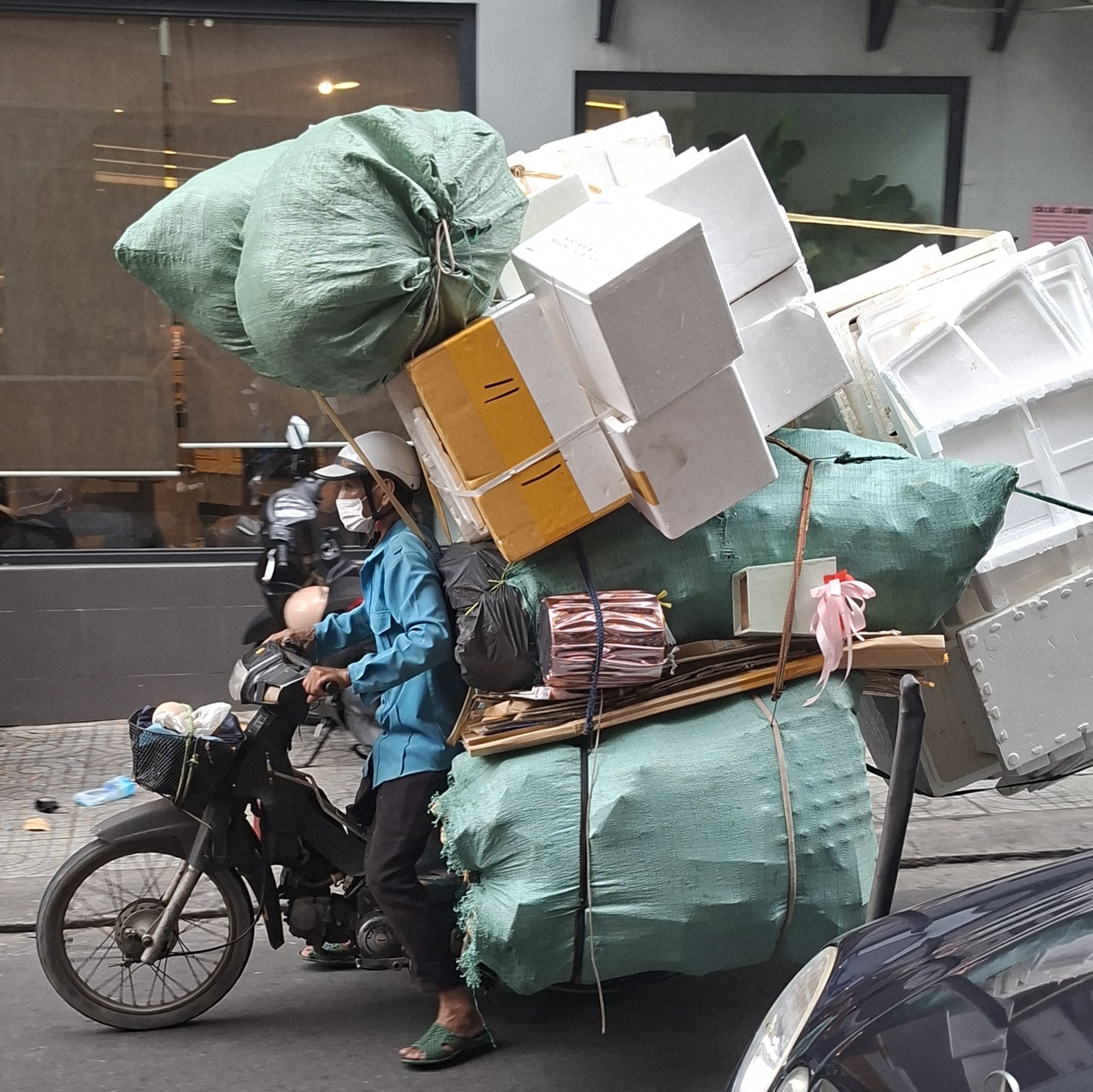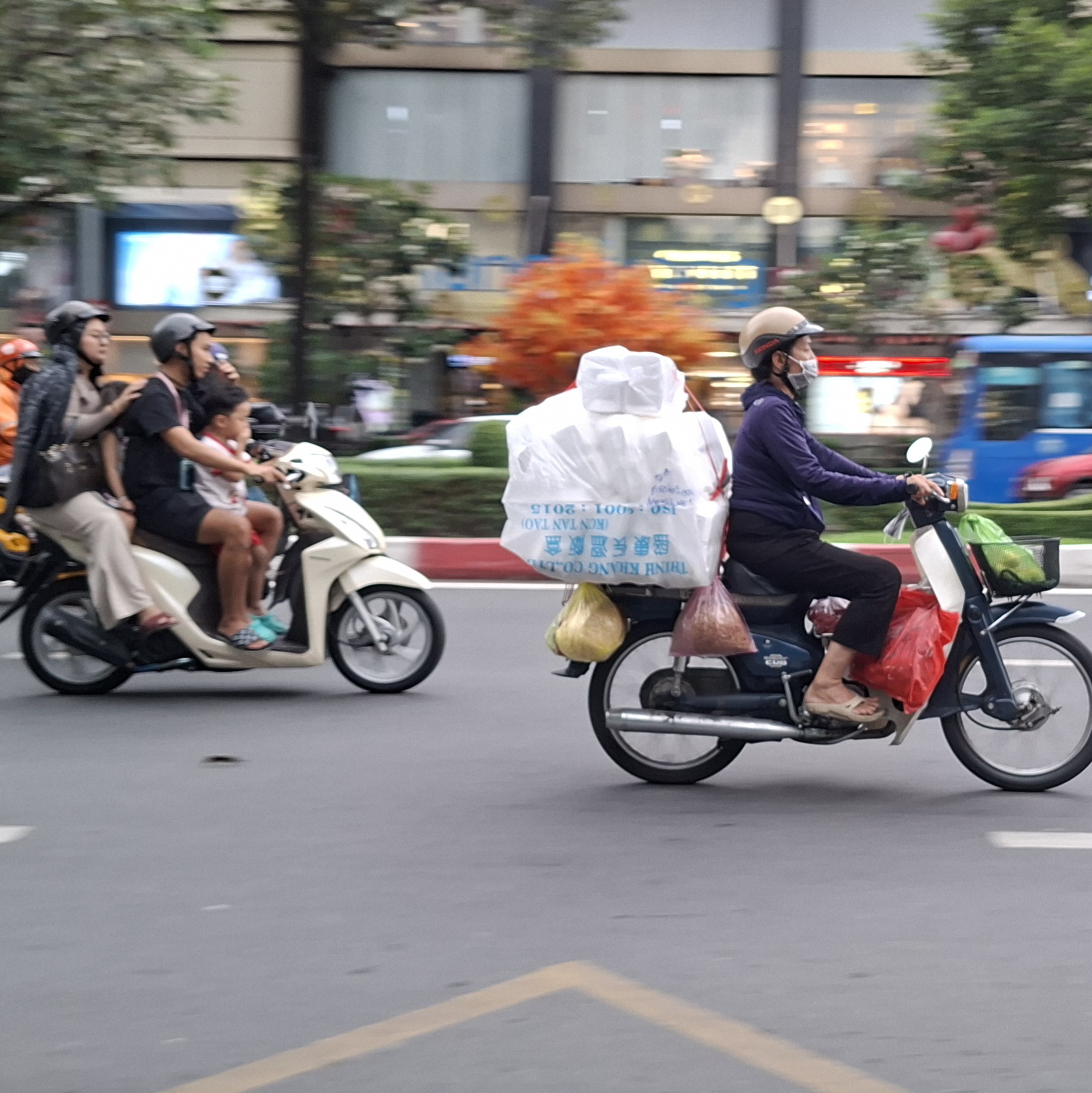Par contre, certaines choses n’ont pas bougé: les restos de rue avec des tabourets en plastique sont toujours là, la circulation est toujours ultra fluide malgré le nombre impressionnant de motos/scooters, la gentillesse des vietnamiens, les vieilles façades subsistent dans certains quartiers, les marchés rock & brol en plein milieu de la rue, les trottoirs impraticables car bondés de scooters, le règne de la débrouille/bricole, les scooters surchargés, les mamies à chapeau conique, les hommes qui montrent leur ventre quand il faid chaud, les femmes dont on ne voit pas 1cm² de peau tellement elles se cachent du soleil, …