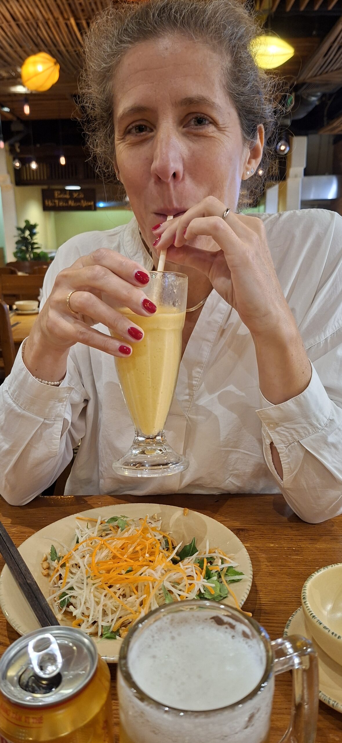 On veut rentrer en bus. Il y des embouteillages. Le chauffeur abandonne à mi-chemin et décide de faire demi-tour 🤯 et il nous plante là! On se rabat sur un Grab. On aura mis presque 2 heures pour rentrer à l’hôtel (on aurait été plus vite à pied, mais a plu; l’envie n’y était pas). On arrive quand même à temps pour pouvoir profiter du repas du soir offert au lounge: miam!