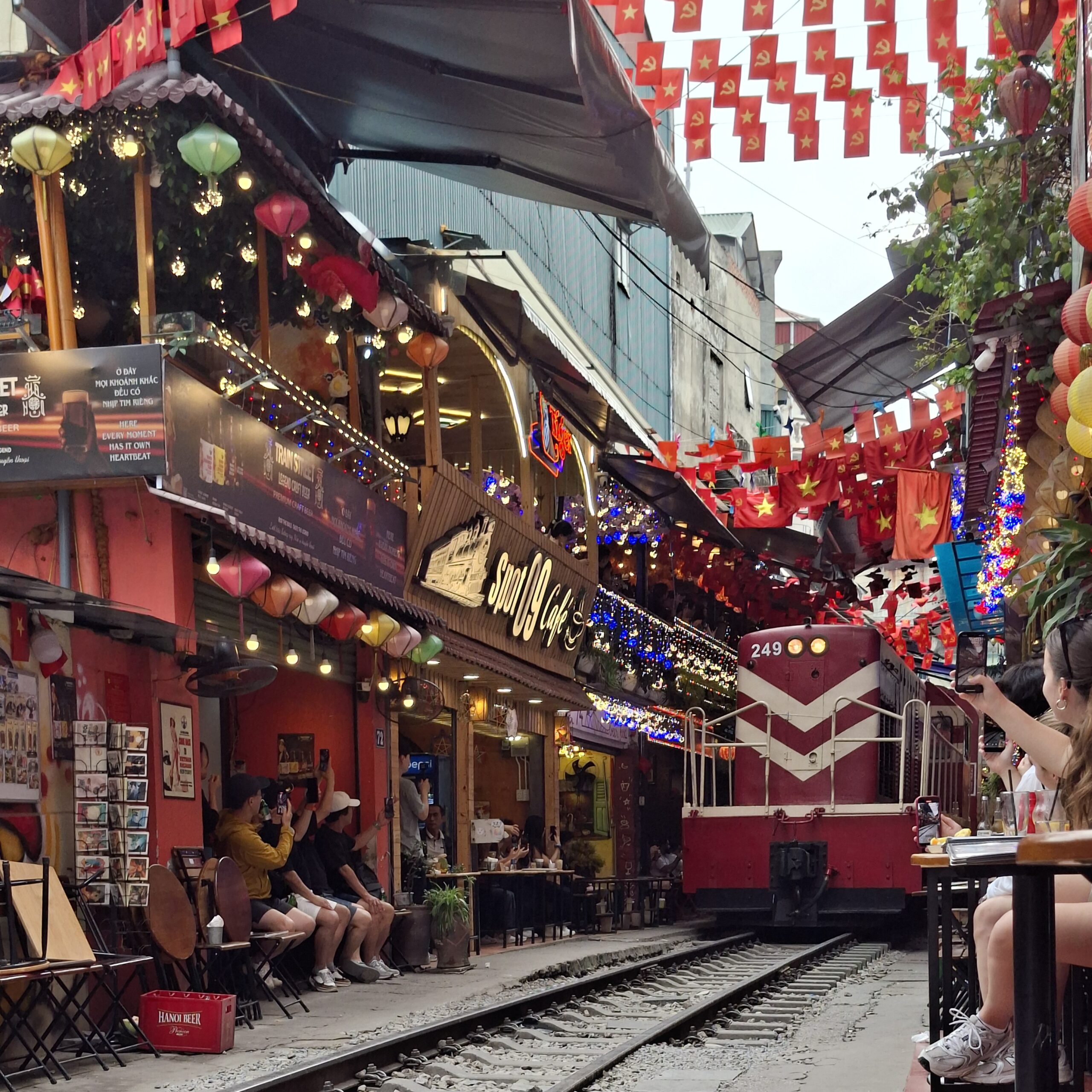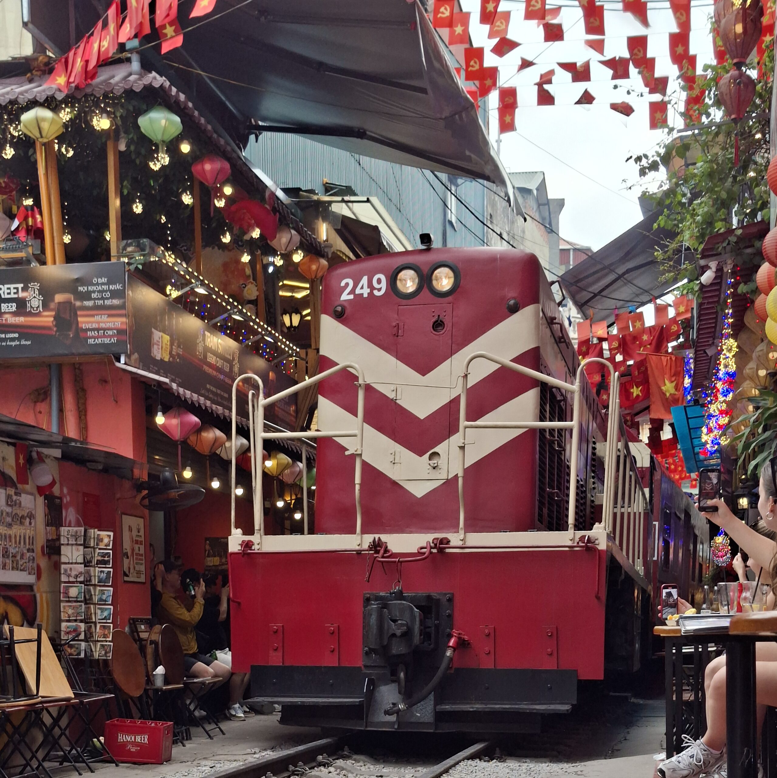 C’est très coloré ! Et assez comique de voir les commerçants ranger toutes leurs tables et chaises juste avant l’arrivée du train.