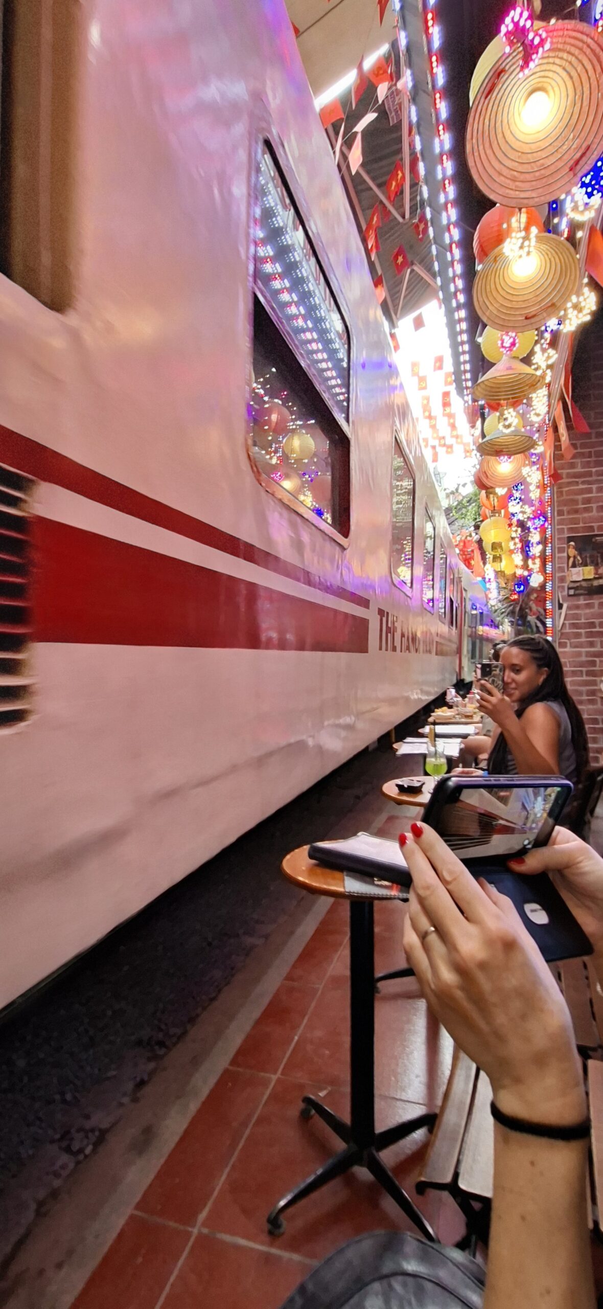 On a super bien (et longtemps) dormi. On a traîné un peu (Marie fait son courrier et je chipote). On se met en route, avec Grab, vers la Train street… et cette fois ci, on a vu passer un train!