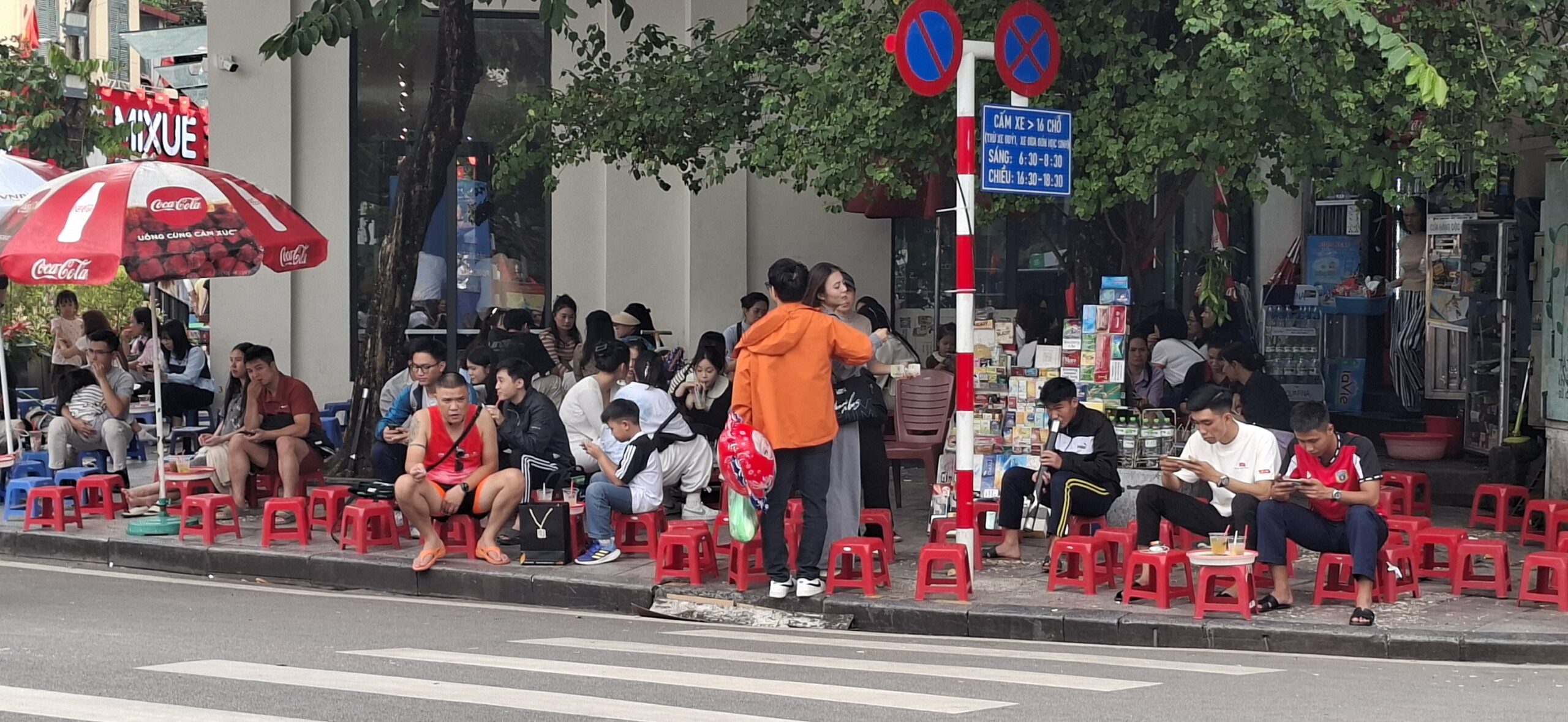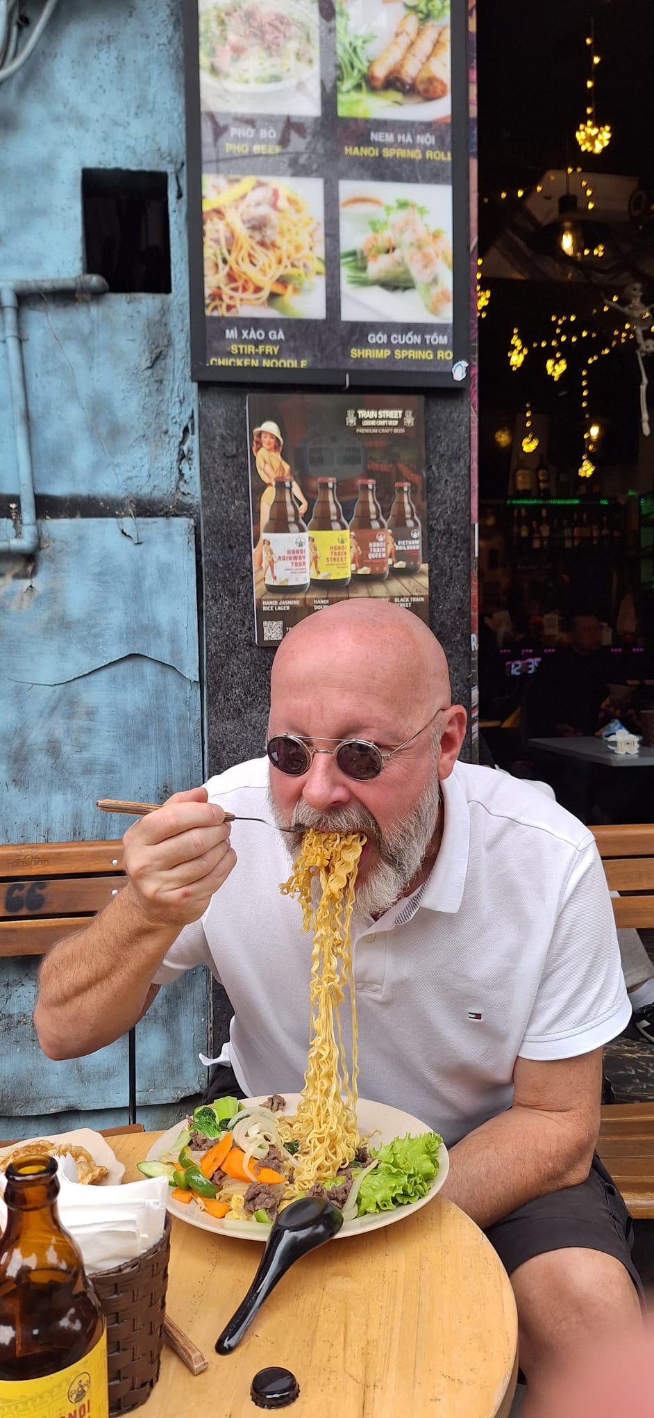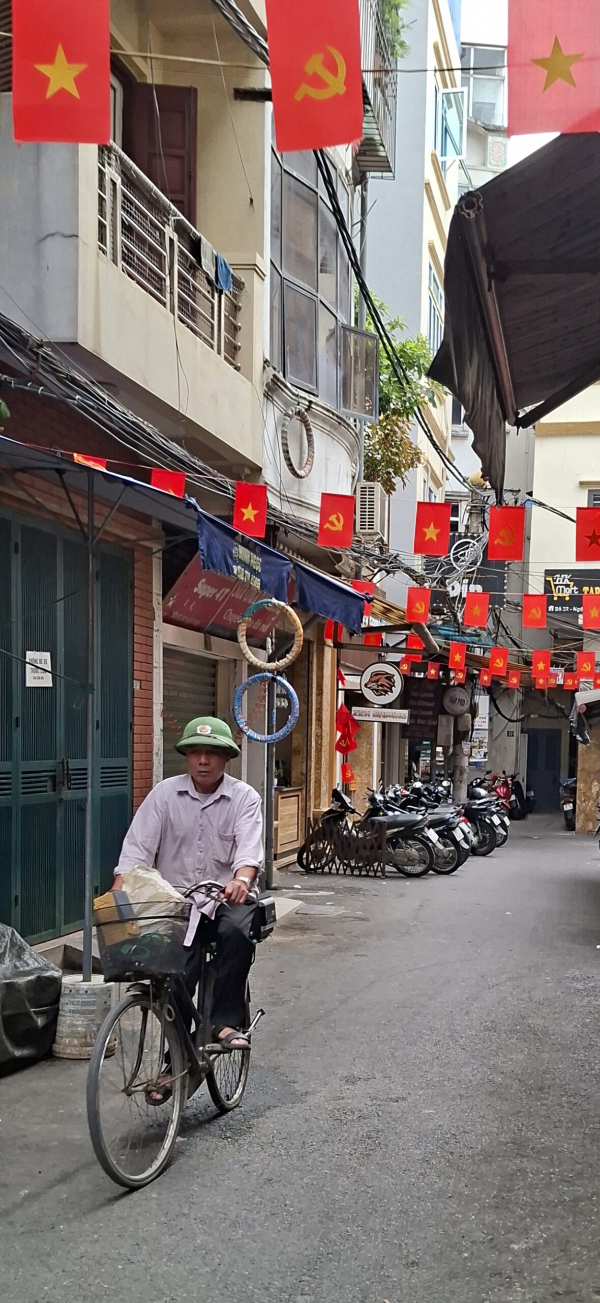 C’est un plaisir de regarder les vietnamiens vivre. Ils sont cools, comme leur conduite. Plein de choses se font sur le trottoir : des bons petits plats sur un mini réchaud, la réparation de motos, une coupe chez le coiffeur, une retouche de vêtements à la machine à coudre, la vente d’absolument tout : fruits, légumes, lunettes, viande (dont du chien, si, si ! On en a vu 1 demi rôti), des phares de voitures, des tissus, …