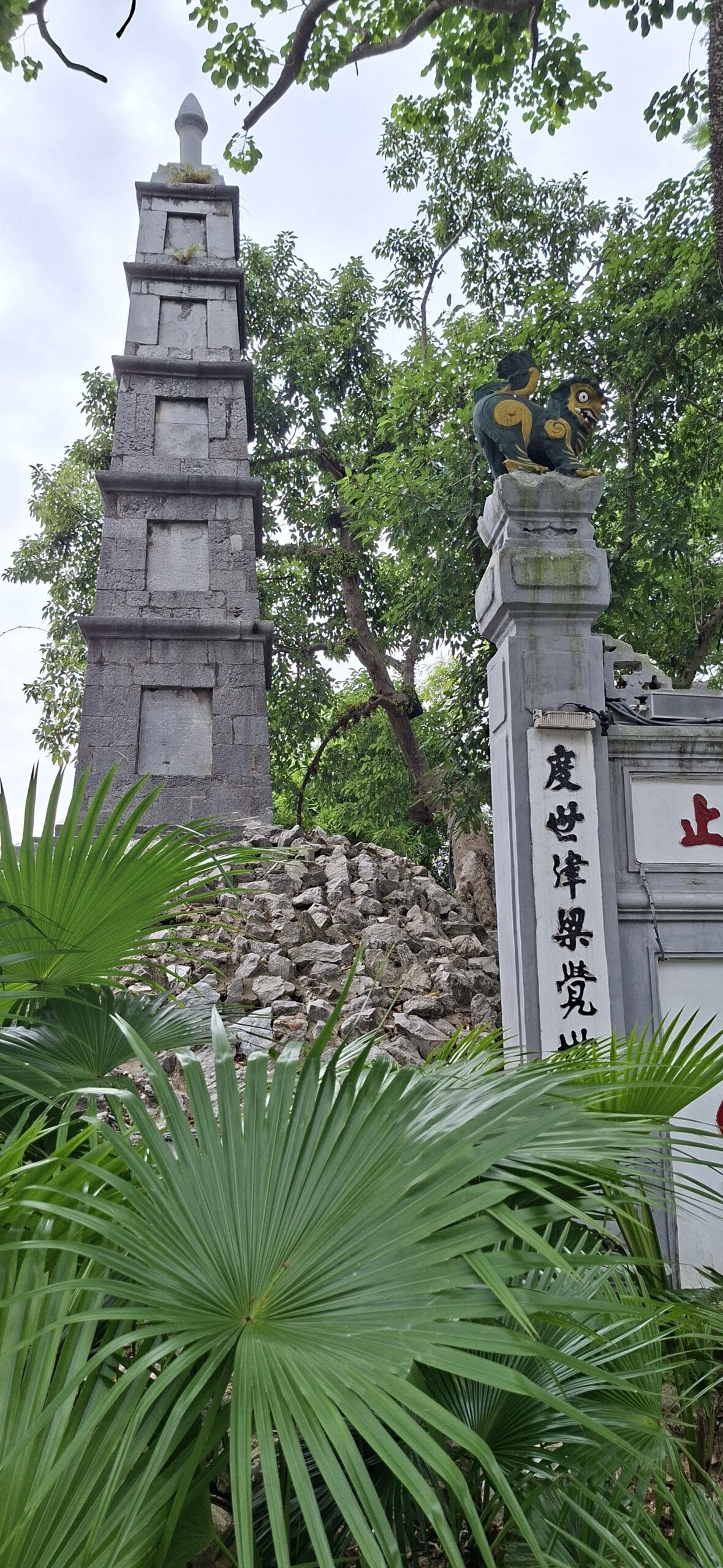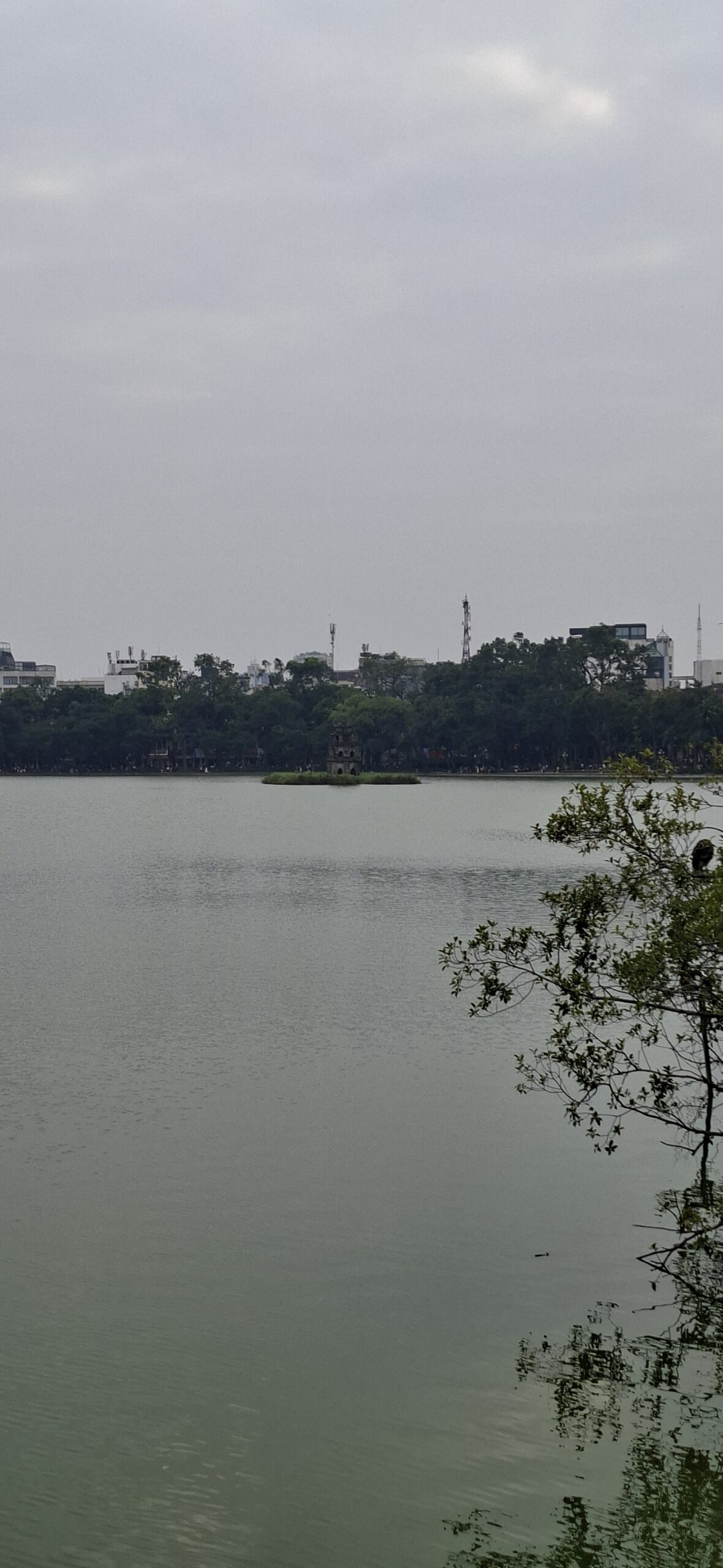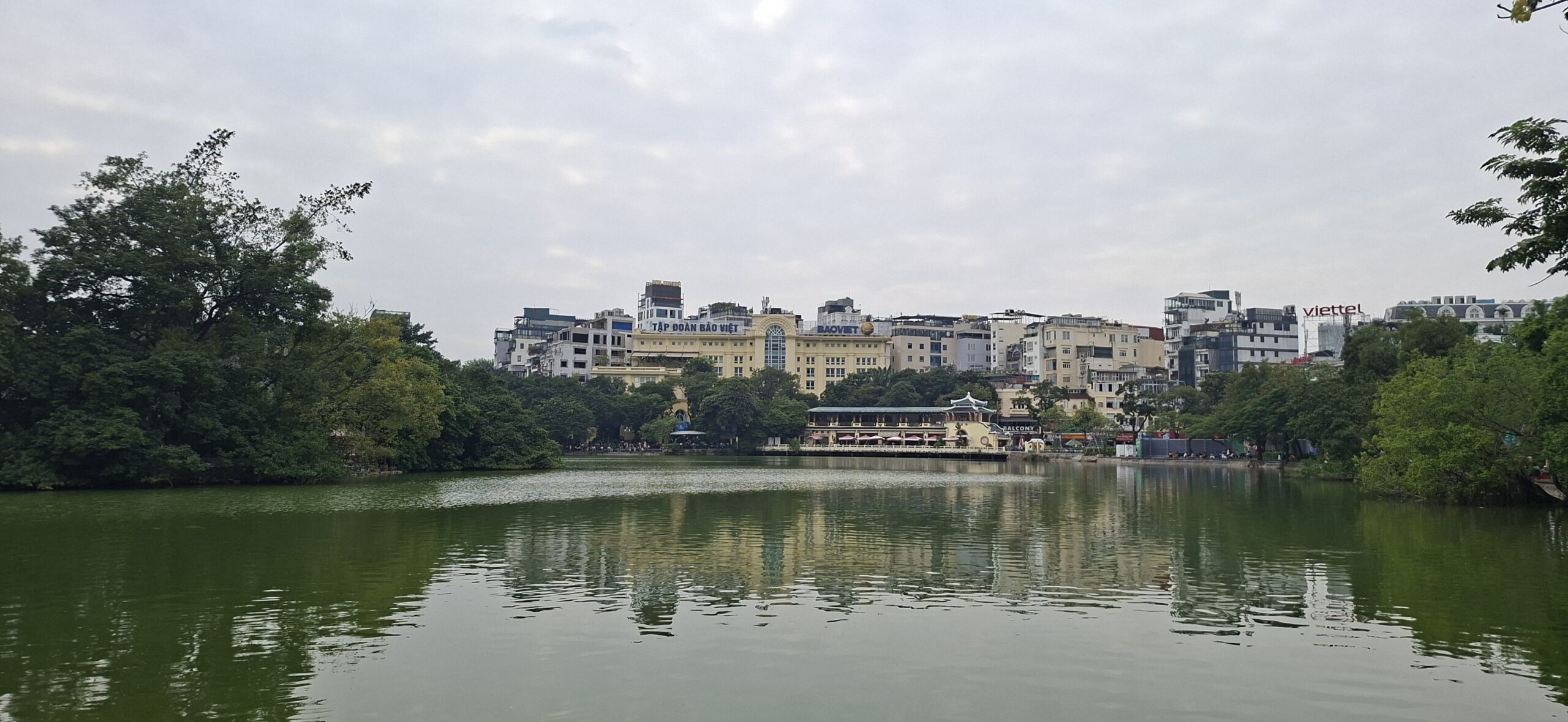 On chemine ensuite vers le Lac Hoang Kiem, poumon touristique de la ville. Aujourd’hui , tout est piétonnier ; un jogging se prépare… mais très peu pour moi… il fait trop chaud 😁 On se contente de la visite du temple de la tortue.