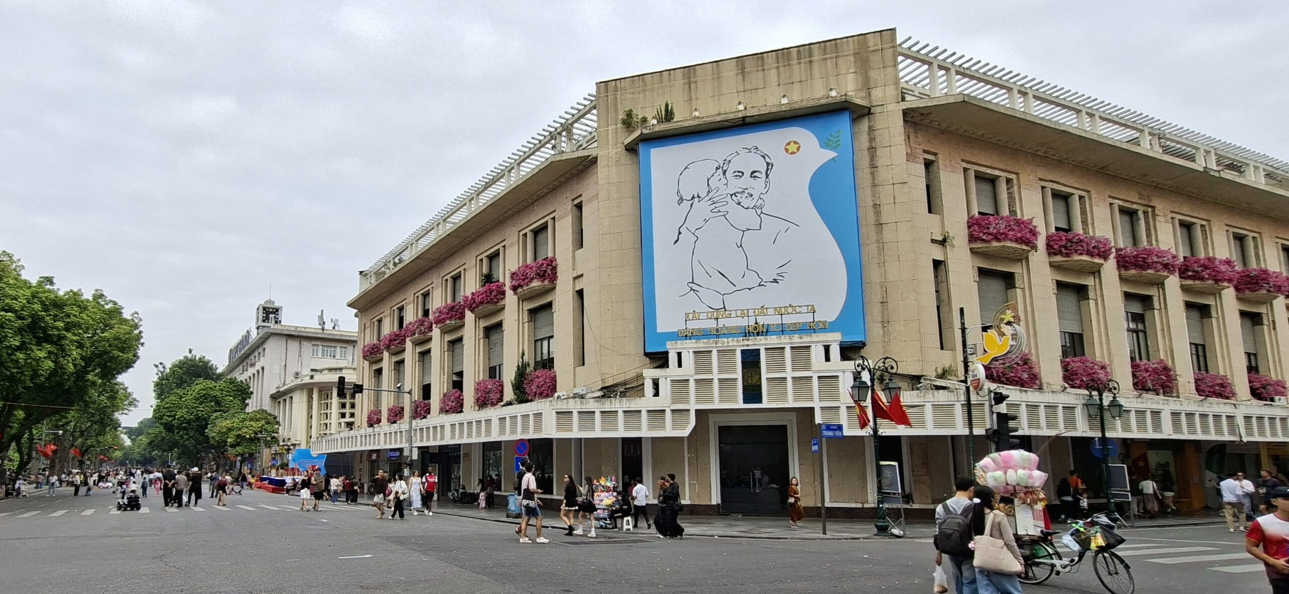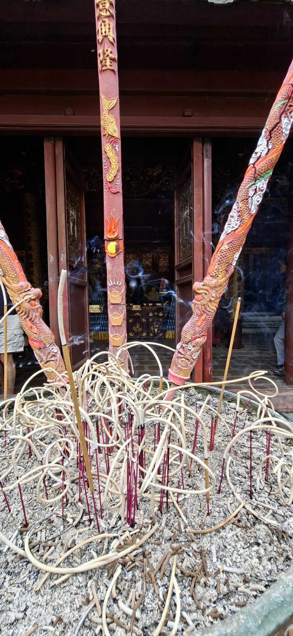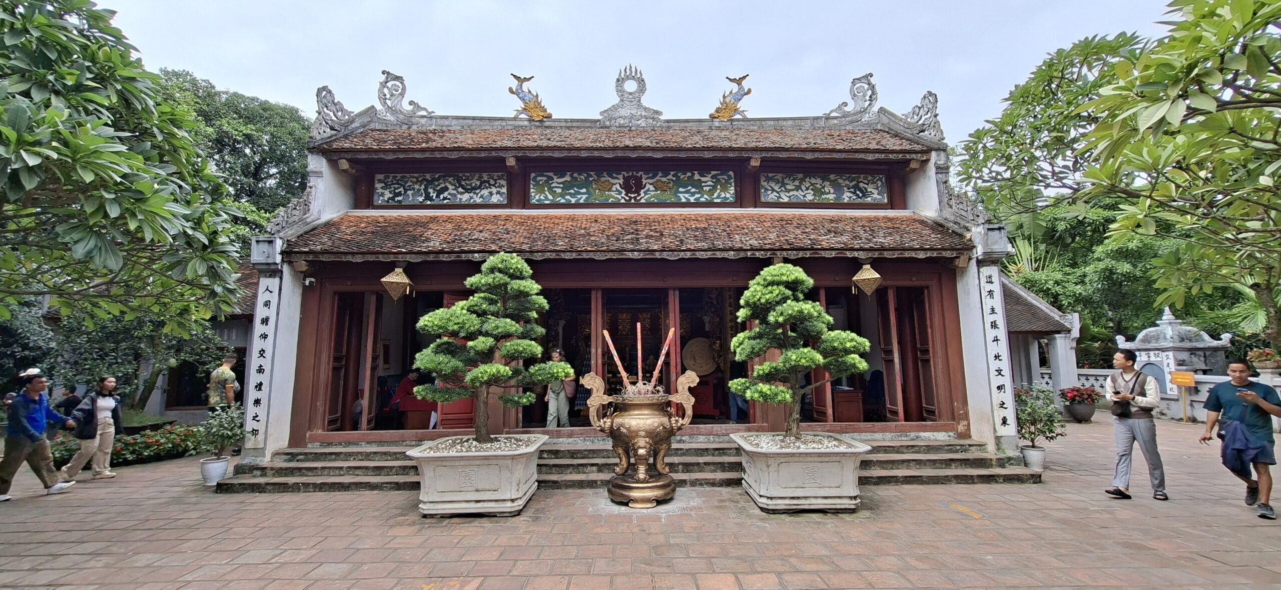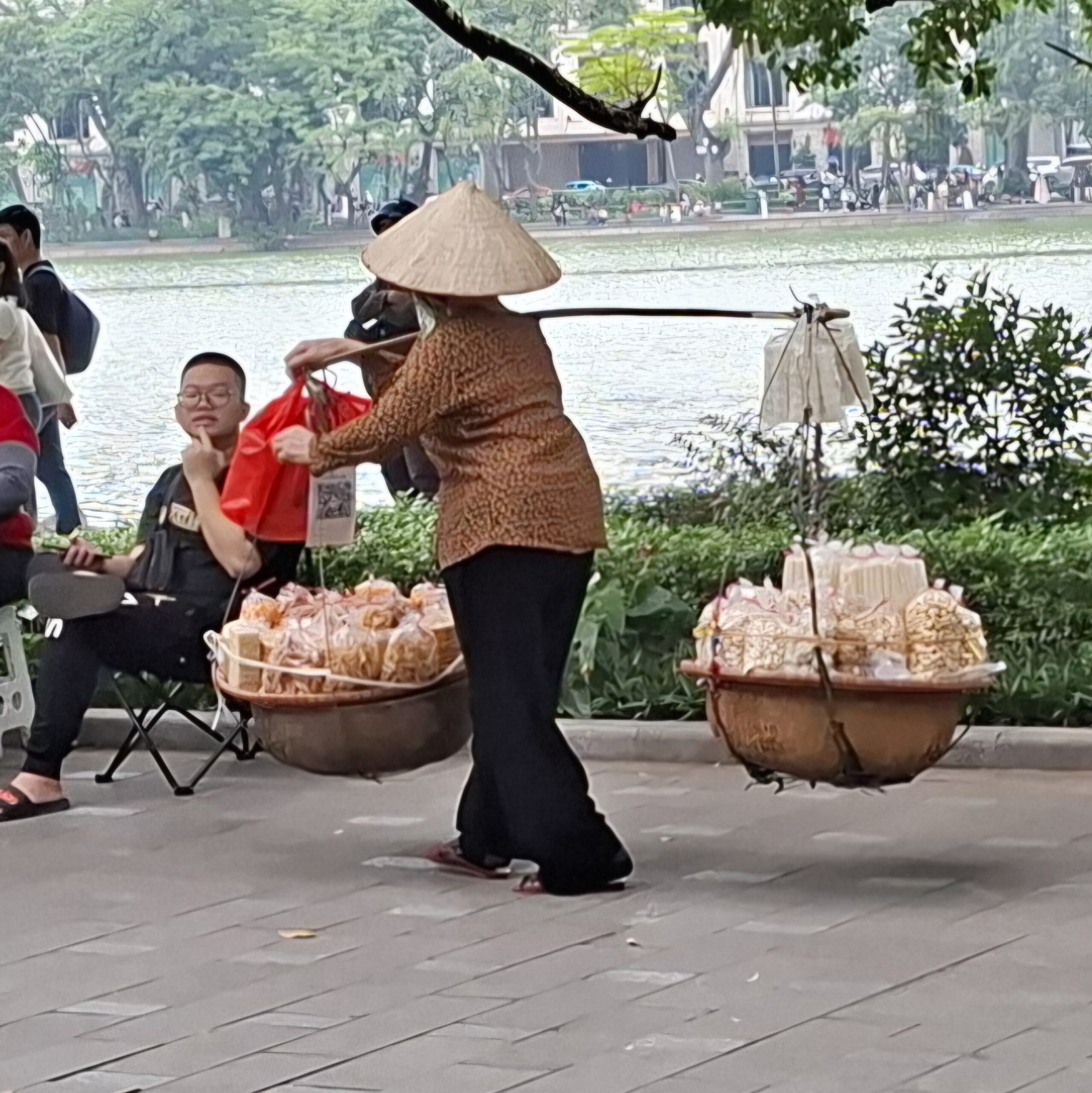 On chemine ensuite vers le Lac Hoang Kiem, poumon touristique de la ville. Aujourd’hui , tout est piétonnier ; un jogging se prépare… mais très peu pour moi… il fait trop chaud 😁 On se contente de la visite du temple de la tortue.