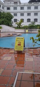 On retourne s’installer et se rafraîchir à l’hôtel. C’est vrai que l’hôtel est resté « dans son jus » depuis un moment (si on en croit les sets de table du petit-déjeuner, 1998). Mais cela reste sympa de séjourner dans un morceau d’histoire (pas reluisante, puisqu’il s’agit de colonialisme)…