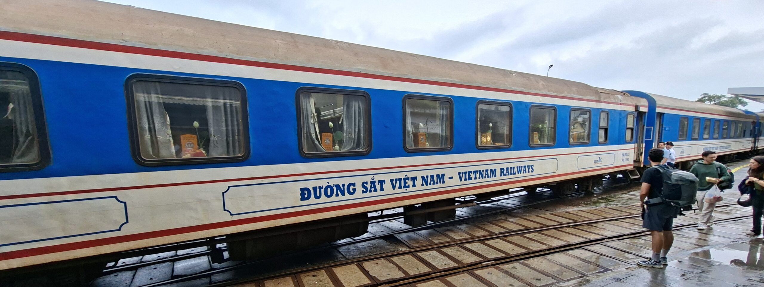 On arrive à Hué, un peu avant 9h, avec 25 minutes d’avance sur l’horaire prévu. Il pleut. On atteint le Saigon Morin Hotel avec un Grab. On tente un very early check-in. Pas de bol! Notre chambre ne sera prête qu’à 11h. Par contre, le « Welcome back, M. Benoit! » nous a surpris 🤯 Le réceptionniste a vu sur son ordinateur qu’on était venu en 2006… (Réaction de Marie: « si son ordi est autant dans son jus que le reste de l’hôtel, ce n’est pas étonnant ; ça doit toujours être le même programme » 🤣). On profite du petit-déjeuner.