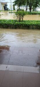 La pluie avait diminué en intensité, cette nuit, et le niveau de l’eau a fort baissé durant la nuit (l’équivalent de 3 marches d’escalier).