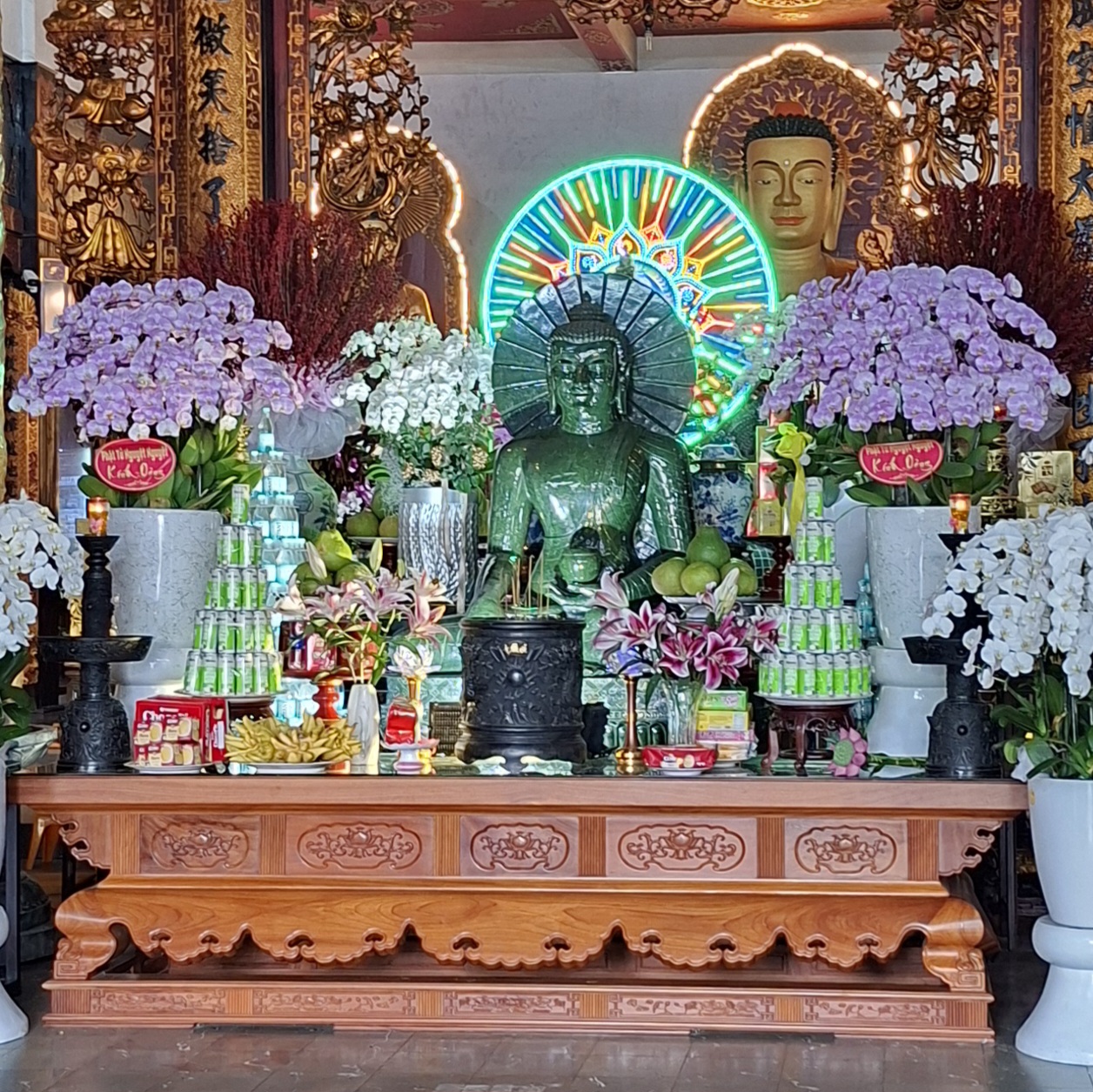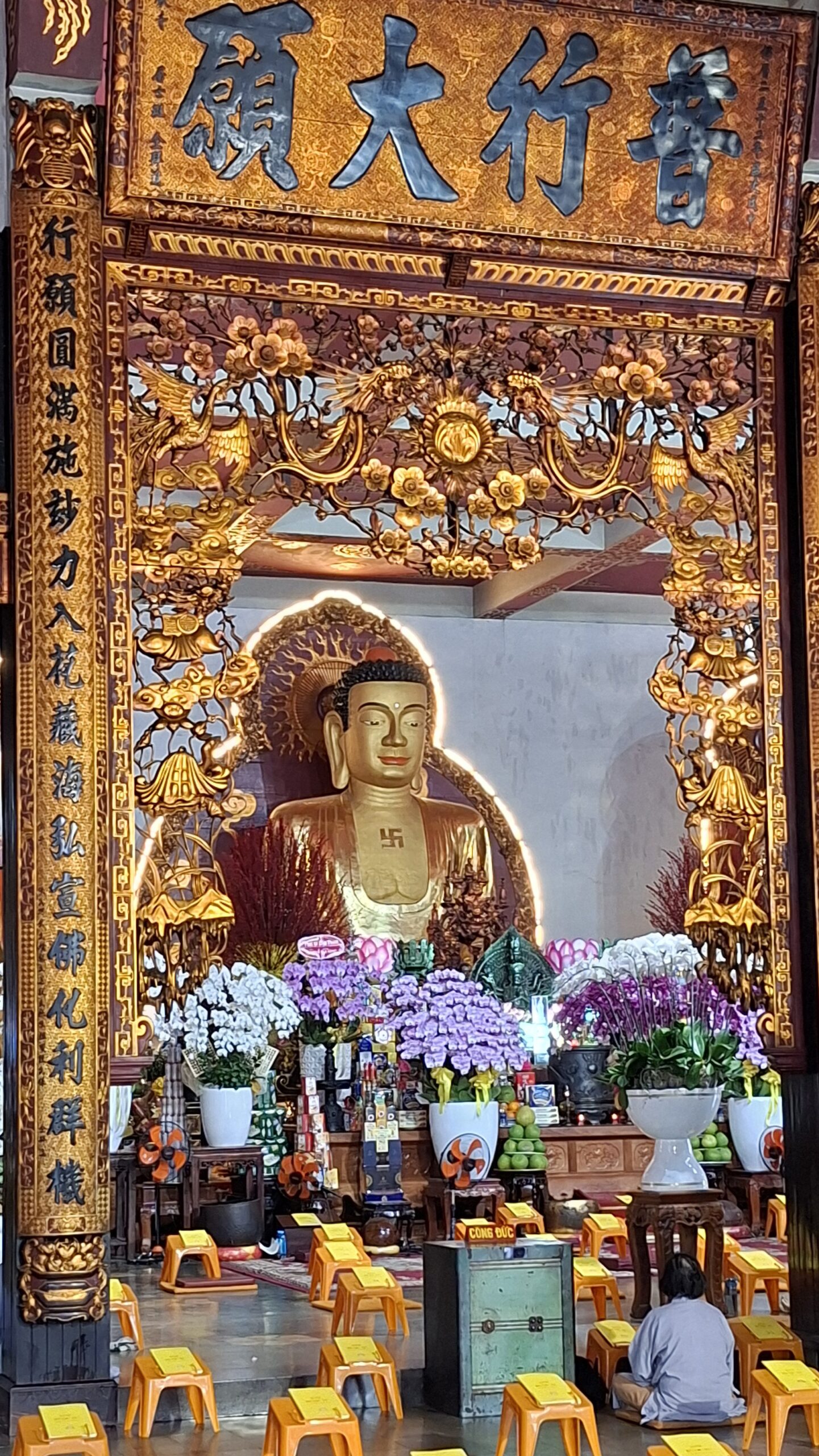 On grabbe (oui, j’en ai fait un verbe 🤣) jusqu’à un temple, repéré sur Google Maps, Vinh Nghiem buddist temple. Un assez grand temple.