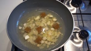 Peler et couper les oignons, l’ail et les carottes et jeter les déchets au compost